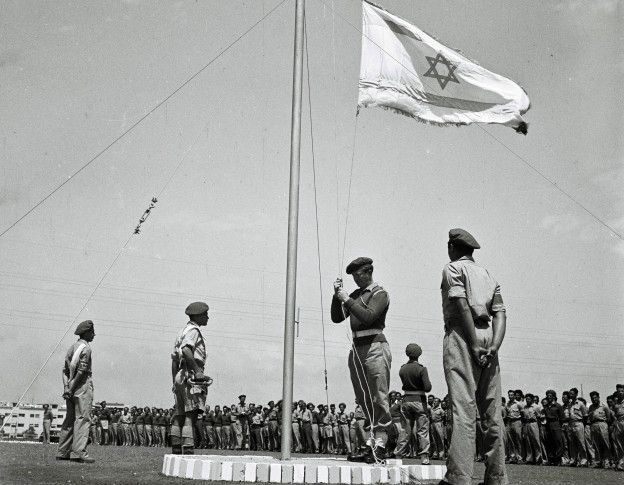 Un día antes de que expirara el Mandato británico de Palestina, el 14 de mayo de 1948, la Agencia Judía para Israel, representante de los judíos durante el Mandato, declaró la independencia del Estado de Israel.