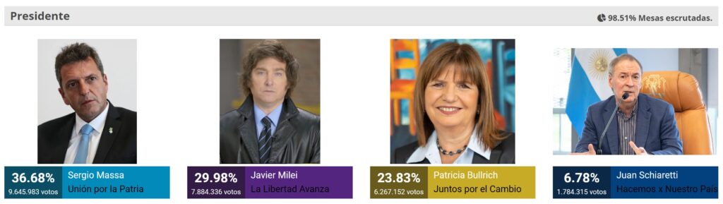 Así quedaron los números que definieron las elecciones del 22 de octubre en la previa al balotage para definir quién será el presidente de la república a realizarse el 19 de noviembre.
