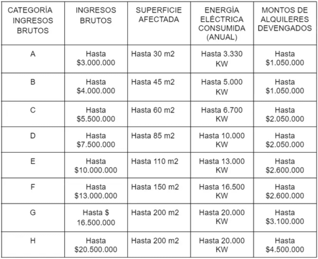 Para el caso de la facturación límite del régimen como la categoría H en servicios, el proyecto anterior ponía el límite en $35.000.000 mientras que el actual lo ubica en $20.500.000. En el caso de la venta de cosas muebles, el límite máximo era de $68.000.000 de la categoría K y en el actual pasaría a $35.500.000.
