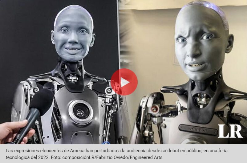 Ameca es un robot humanoide altamente elocuente y diseñado por expertos de Engineered Arts en 2005. Aparte de sus expresiones faciales, que intentan simular gestos humanos —aunque no a la perfección—, ha creado inquietud al abordar temas sobre su propia percepción de la realidad. Al ser interrogada sobre su autocomprensión, los circuitos del autómata dieron la siguiente respuesta: