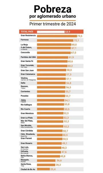 (Cabe recordar que en el cuarto trimestre de 2023 la pobreza era del 45,2% y la indigencia del 14,6 por ciento. Y para ser justos los primeros 3 meses de 2023 las tasas fueron de 38,7% y 8,9% respectivamente).